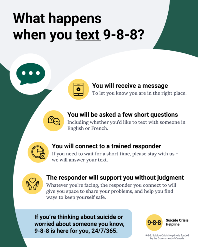 Today, November 30th is the launch of 9-8-8: Suicide Crisis Helpline, Canada’s new three-digit number for anyone who is thinking about suicide or worried about someone they know. Whoever you are, wherever you are located you can call or text 9-8-8, 24/7/365.