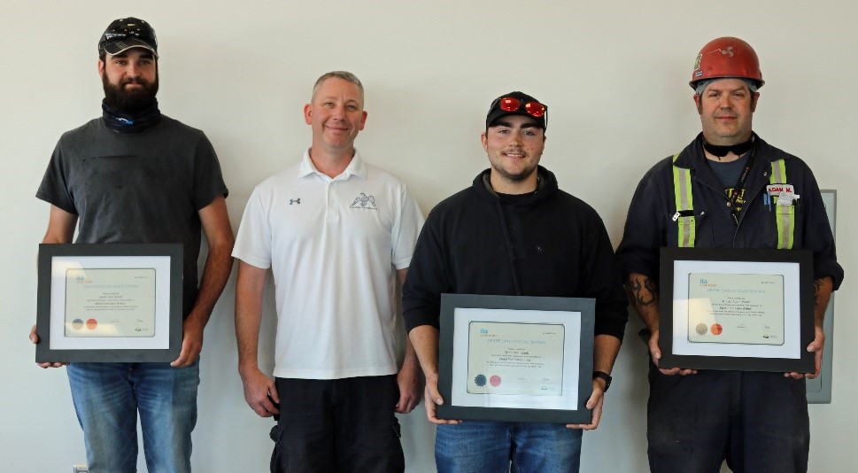 First graduating class from the Local 191 Apprenticeship Program. (Left to right) Jared Arnold, Robert Taylor (Business Manager/Secretary-Treasurer, Local 191), Dylan Heemskerk and Robert Adam Moore.