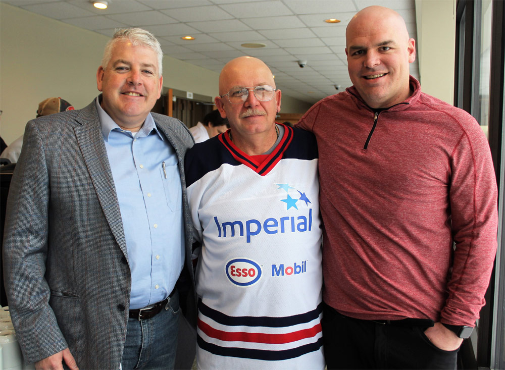 (Gauche à droite): Vince Gagne (Gérant général Industrial Education Cooperative), Ed Linton (Délégué syndical du Local 128 des Chaudronniers), Shawn Zettel (Gérant de la santé et sécurité pour Imperial Oil)