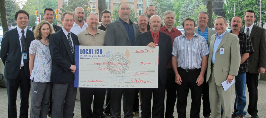 Brother Kenny B. Kilday, Chairman of the Trustees, Local 128, reports that Lodge 128 donated $30,000.00 to the Joseph Brant Memorial Hospital in Burlington, ON.