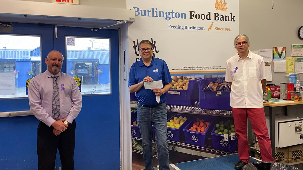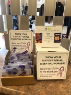 The Purple Ribbon Campaign supporting Essential Workers makes its first contribution to the Burlington Food Bank.