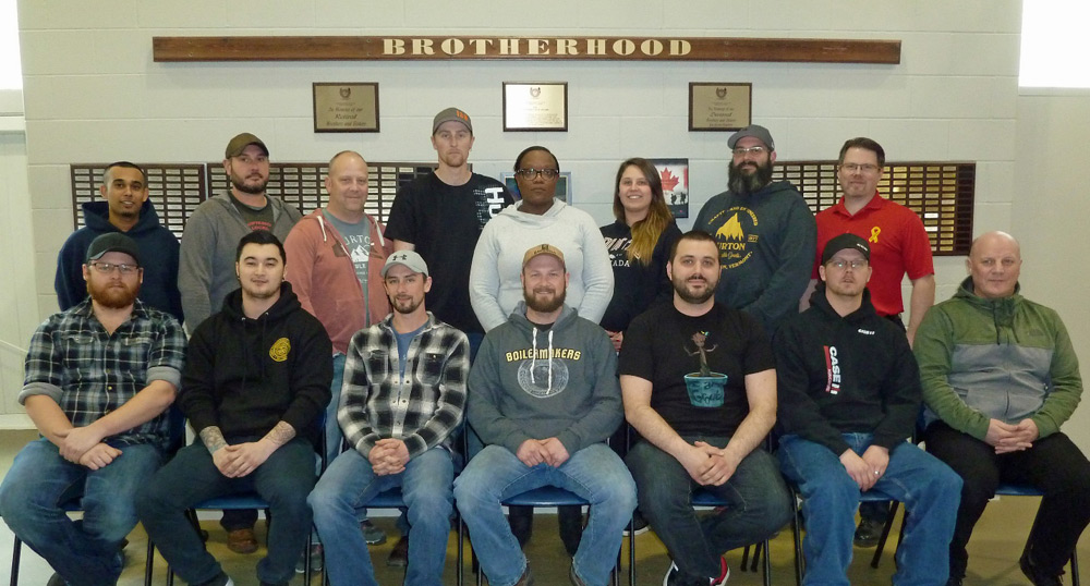 Local 128 Class – Back row (left to right): Kevin Persad, Ray Tolnay, Jeff Spence, Darcy Stutt, Marilyn Francis, Kristina Termorshuizen, Jordan McDonald and Jonathan White (National Training Coordinator). Front row (left to right): Charlie Vanderhock, Austin Do-Hanley, Kyle Boniface, Luke Malone, Malcolm Bailey, Jason Britton and Liam Donnelly.
