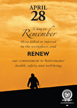 Every year Canadians recognize April 28th as a day to remember workers who died due to an accident or exposure in the workplace. Two examples of the dangers we Boilermakers face at the workplace have been recognized by WorkSafe in New Brunswick - Brother Omer Allain of Lodge 73 and Brother Paul Douglas of Lodge 359. To view their stories, click on their names below: