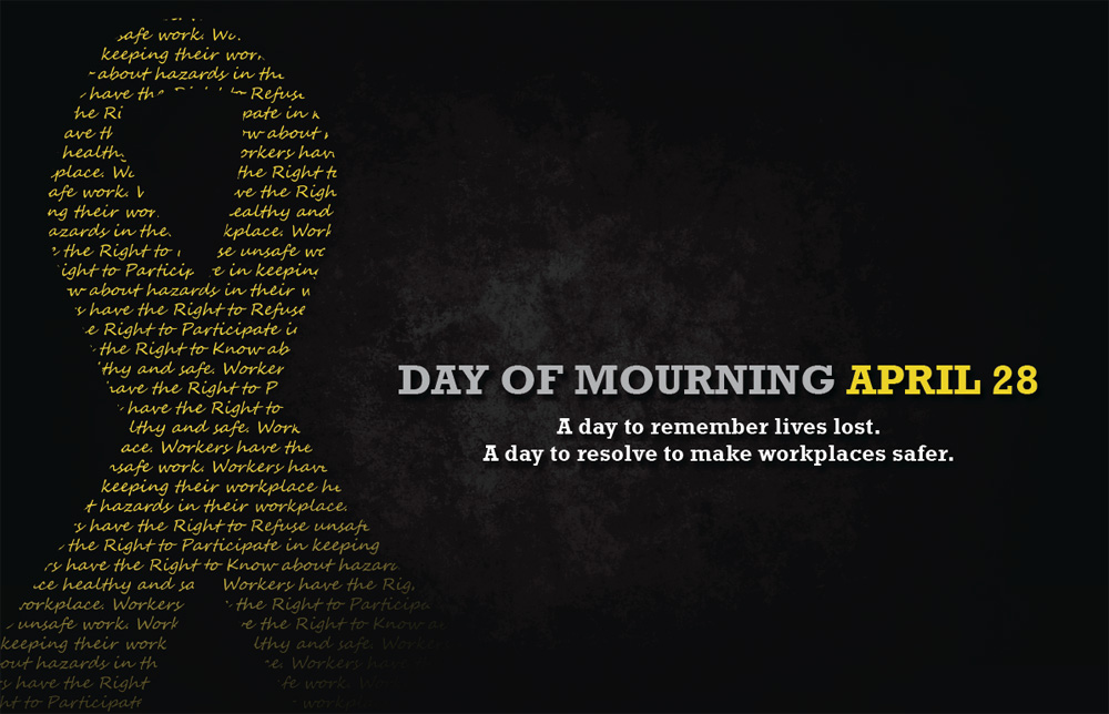 April 28th marks the National Day of Mourning to honor those workers who have been injured or died because of their employment. Observed in over 100 countries, April 28th encourages all of us to think of ways in which we can help to achieve the goal of safer and healthier workplaces. More than ever, the role unions play in narrowing the gaps and inequalities in health and safety have never been more important. Our union is committed to protecting our members' health and safety - through training, innovative health protection programs, better equipment, promotion of industry OH&S best practices and lobbying for enhanced OH&S regulations.