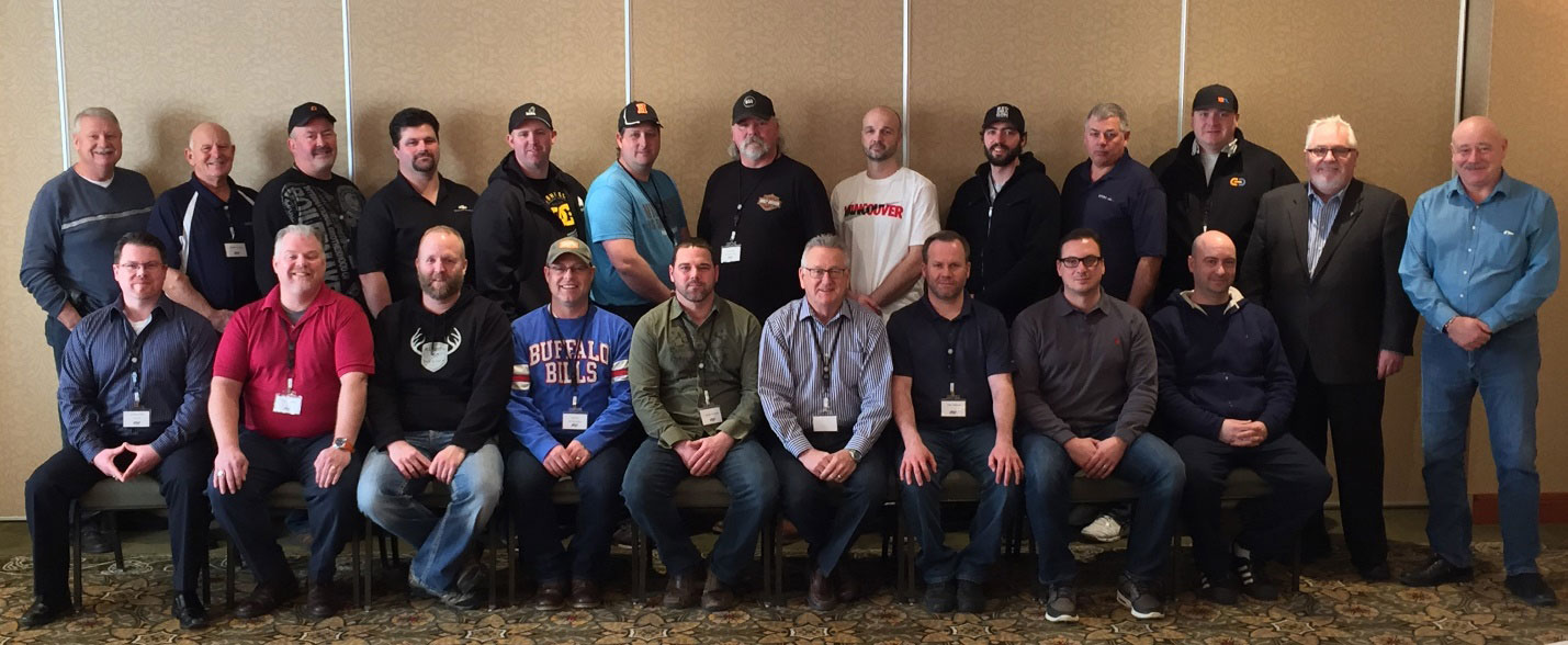 Back Row (Left to right): Fred Cox (Instructor), Gerry Klimo (Instructor), David Wade L-203, Noel Peach L-73, Barry Noseworthy L-146, Riley Snow L-203, Darren Dillabough L-555, Chris Begin L-146, Ryan Johnson L-555, Randy Fenez L-146, Jeff Fontaine L-146, Joseph Maloney (International Vice President), and Greg Blender (Instructor). Front Row (Left to right): Jonathan White (National Training Coordinator), David A. Lewis L-128, Kelly Mayor L-146, Kevin Petronski L-128, Brad Peters L-146, Grant Jacobs (Director of National Training), Eric Bibeau L-128, Scott Howard L-146, and Andrew Dolan L-73.