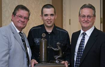 Left to Right: Fabian Tompkins receives the Award of Excellence from Jim Watson,