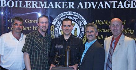 The 2009 Boilermaker Apprenticeship Contest was won by Jason Matteau, a member of Lodge 73. The announcement was made by Grant Jacobs, National Training Coordinator, on behalf of the National Training Trust Fund Trustees at the Award Banquet. The 16th annual Boilermaker Apprenticeship Award of Excellence was conducted at Lodge 128's Training Center in Burlington Ont, June 14th-18th, the first time the contest was held at a Local Lodge's training center.