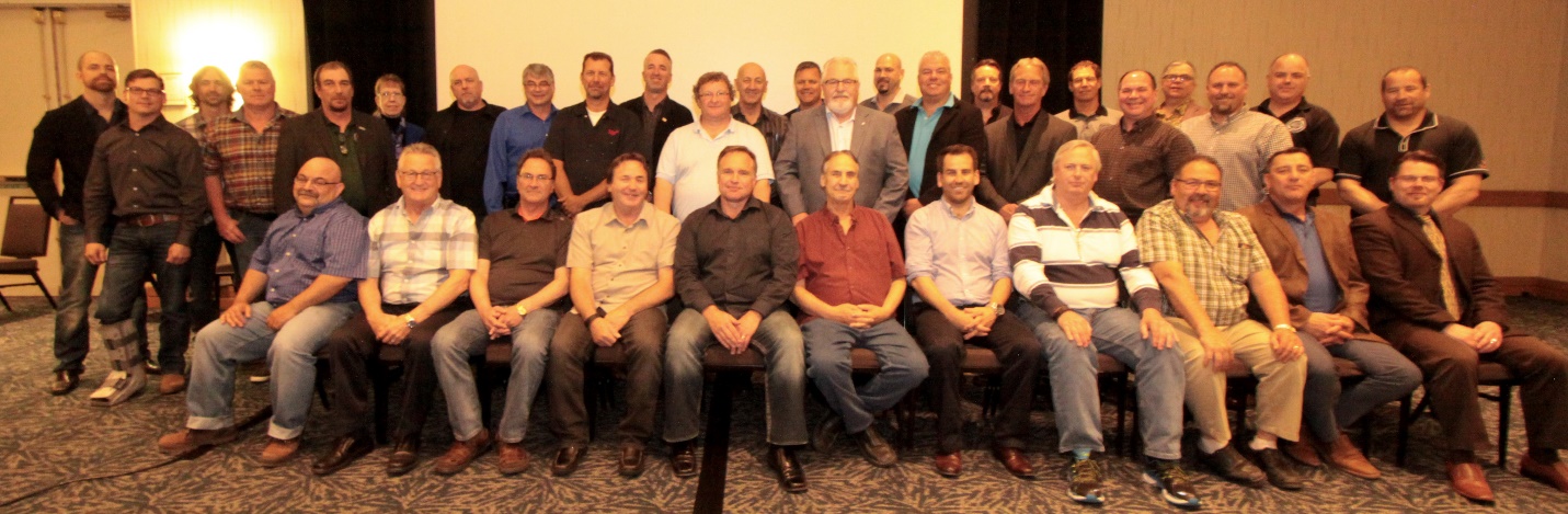 [Click to Enlarge] Boilermakers from the International Staff and Local Lodges; 203, 73, 271, 128, 555, 146 and 359 participated in the national meeting. Back Row (left to right): Ed Hoffmann 128, Dan Grieg 128, Kyle Petronski, Dale Quinn 128, Jim Beauchamp National Training, Jayne Clemance IT, Tim Ford 146, Ken Oliver Int. Rep, Gord Weel 359, Chris Peddle 128, Kim Blyth 73, Eugene Leblanc 73, Allan Belter National H&S, Joseph Maloney IVP of Canada, Kyle Groulx, Cory Channon Int. Rep., Rob Kappel 359, Rob Lauzon Int. Rep., Derrick Carney 73, Blair Allen 128, Ted Stark 555, Jason McInnis Director of H&S, Dalas Santavy 128. Front Row (left to right): Dino Gaudreau 128, Grant Jacobs National Director of Training, Dean Milton 146, John Petronski 128, Jerry Flattery 203, Kevin Chaisson 73, Michel Trepanier 271, Martin Nicholson 359, Emile Gareau 555, Arnie Stadnick Int. Rep., Jonathan White National Training. Photo by Richard MacIntosh.