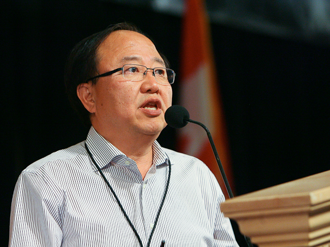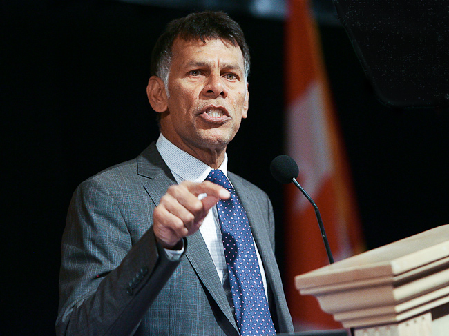 [Click to Enlarge] Canadian Labour Congress Sec.-Treas. Hassan Yussuff discusses antiunion trends in Canada.