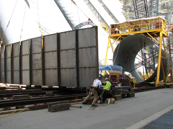 Photo #42 - Paul Lautsch, 359, rigging a plate for the construction of the penstock at Revelstoke Dam, July 08