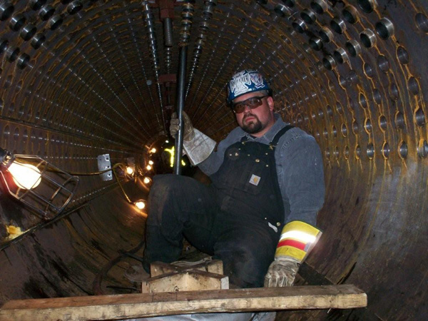 Photo #55 - Local 555 member, Trevor Ducharme, in the Fort Frances Biomass Boiler Mud Drum, 2008
